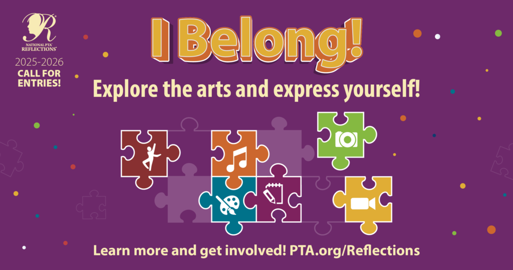 That’s the theme for the 2025-26 Reflections Art Program. California State PTA and its members, families and kids are on the forefront of this amazing program, which increases community awareness of the importance of arts in education. All students attending PTA schools sponsoring the program are invited to participate and submit original artwork in one of six areas: Dance Choreography, Literature, Photography, Film Production, Music Composition and Visual Arts.